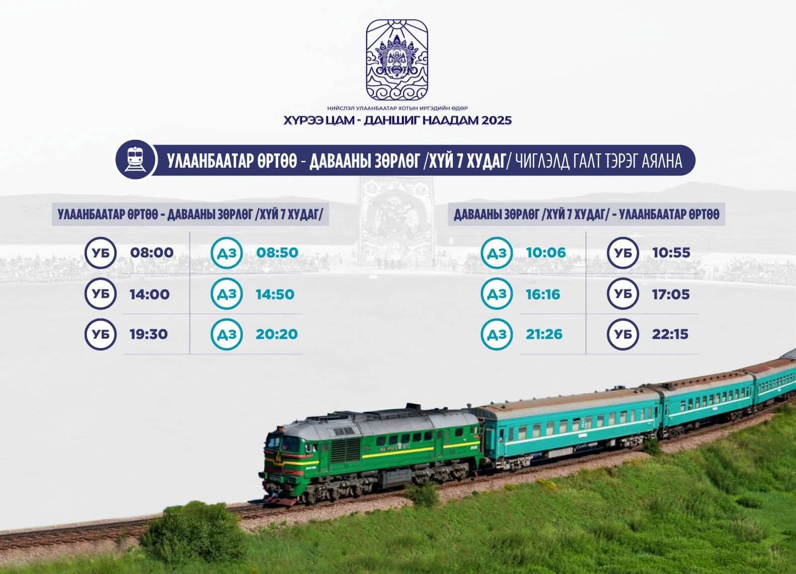 “Хүрээ цам-Даншиг наадам 2025”-аар Улаанбаатар–Давааны зөрлөг–Улаанбаатар чиглэлд галт тэрэг аялна