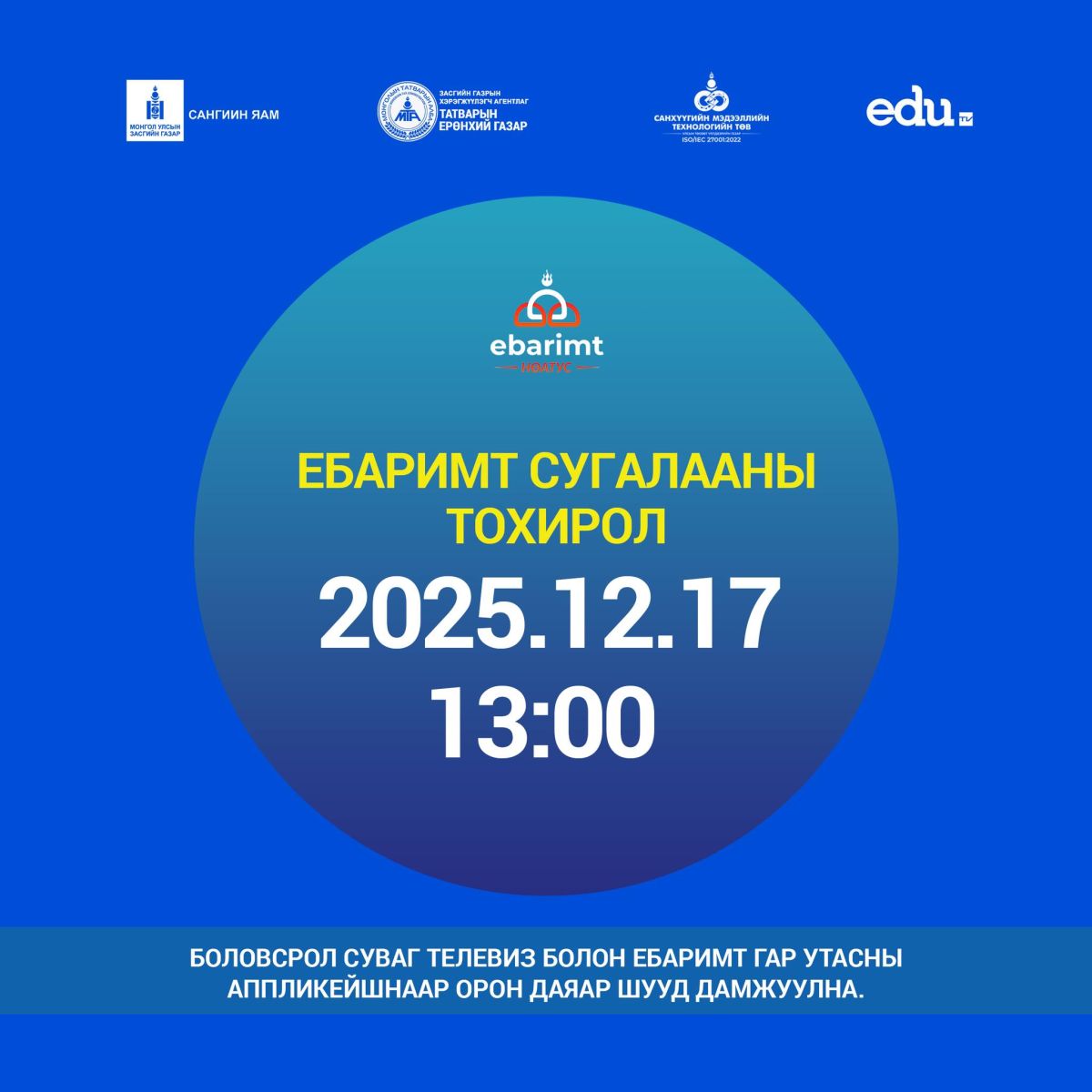 НӨАТ-ын урамшууллын сугалааны тохирлын шууд нэвтрүүлэг маргааш буюу /2025.12.17/-ны 13:00 цагт болно