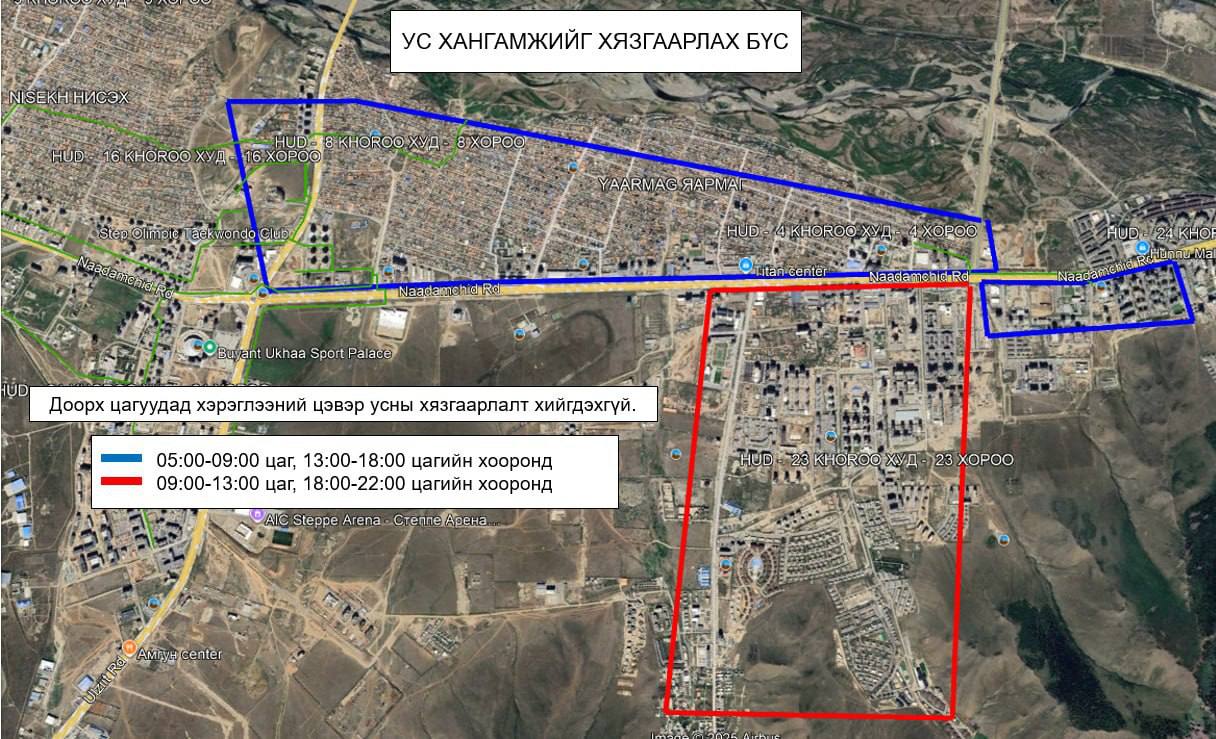 ХУД -ийн 5, 6, 7, 23, 24 дүгээр хороодын хэрэглэгчийн хэрэглээний усыг 2025.11.06 өдрийн 22:00 цагаа